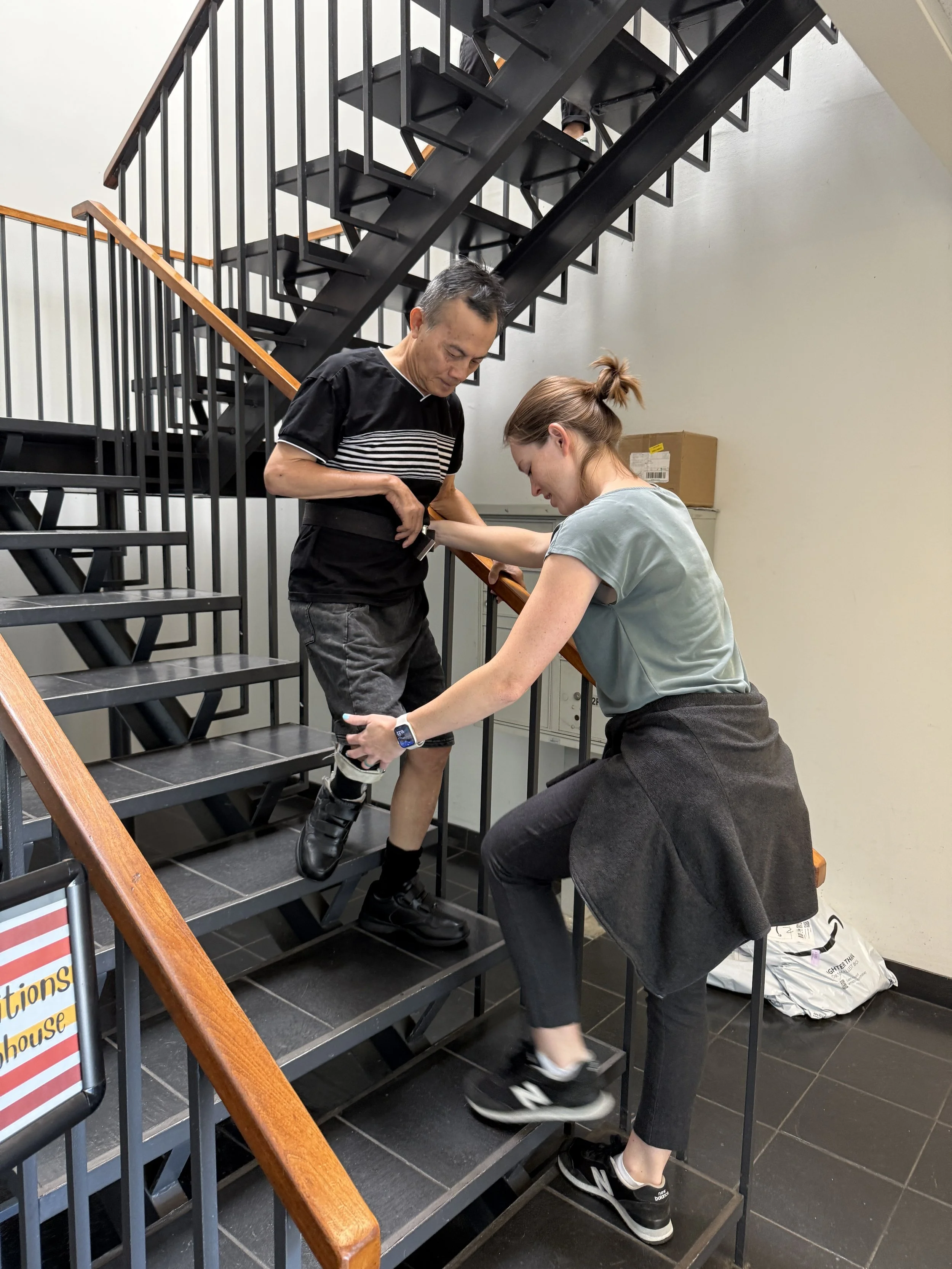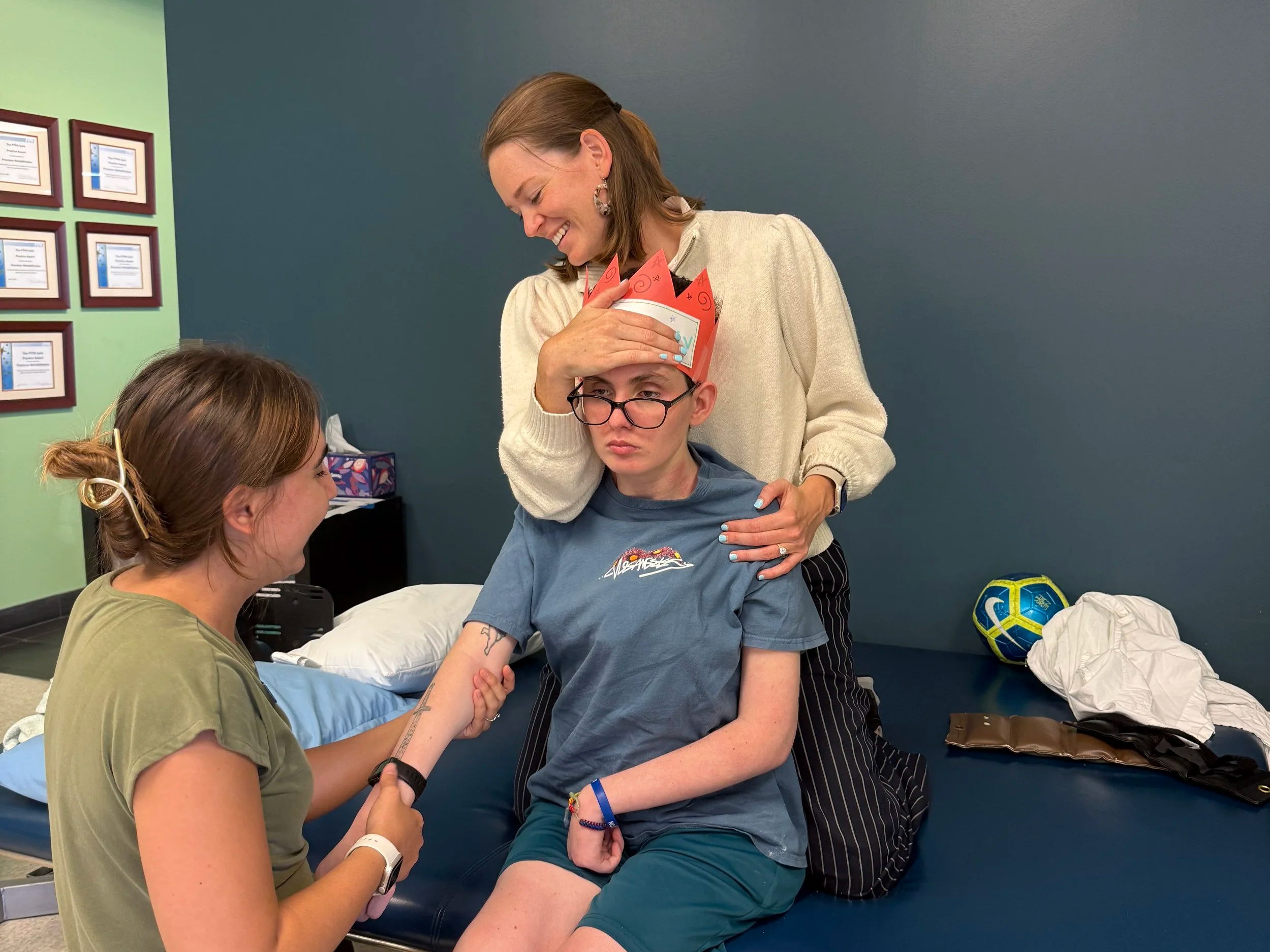 Amanda and a student assisting a patient in a Physical Therapy session.